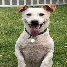 My wonderful wife, Denise and our Jack Russell terrier, Buster